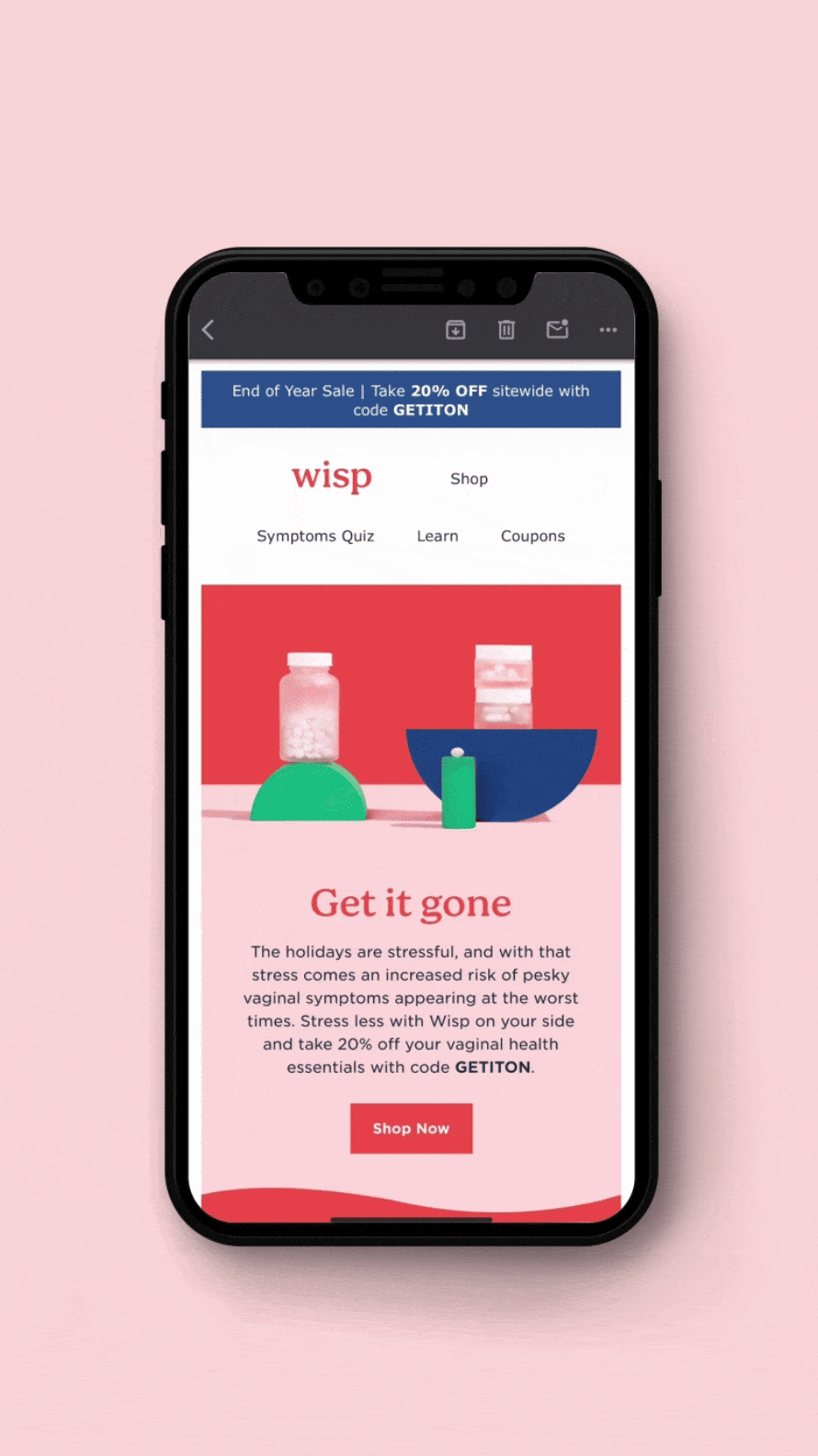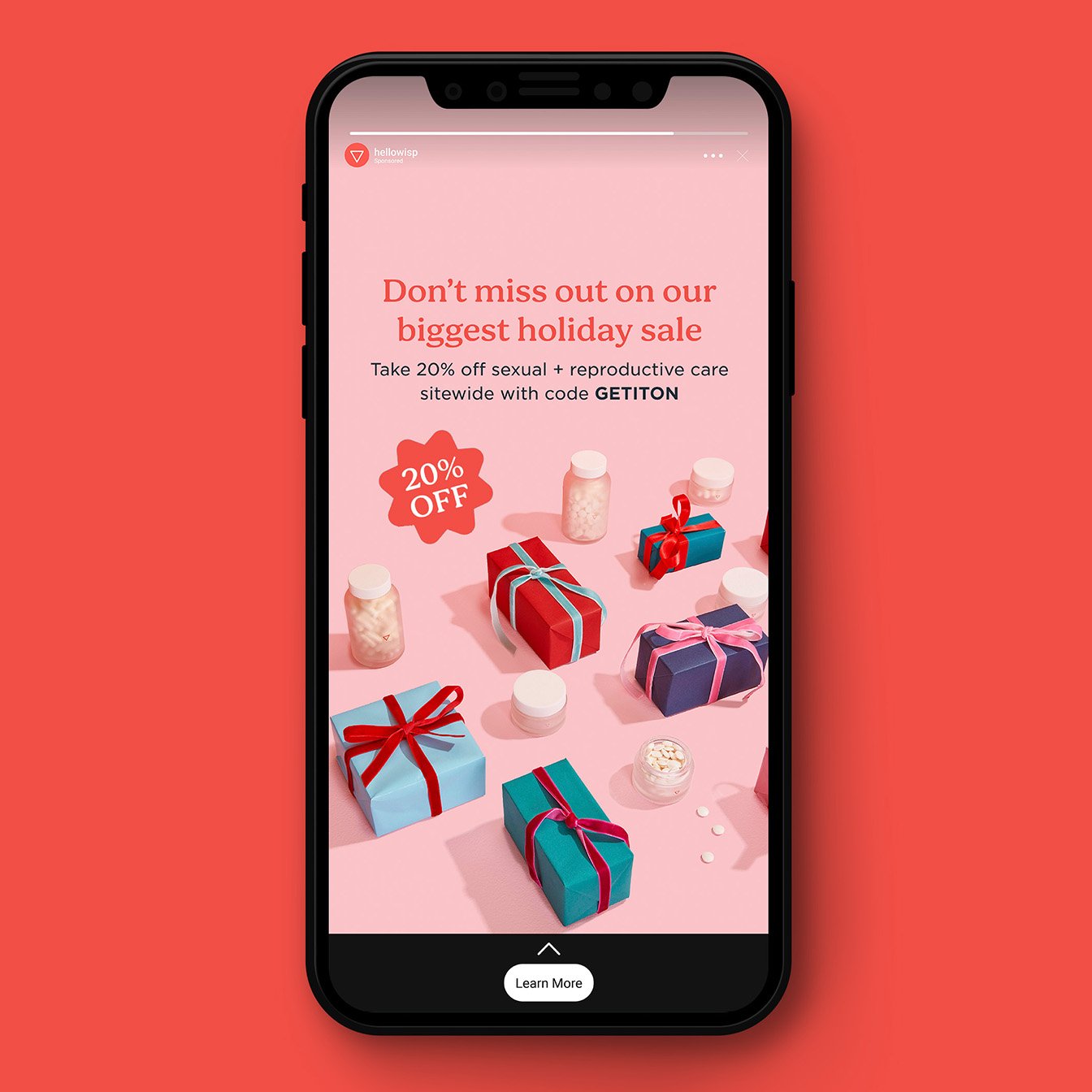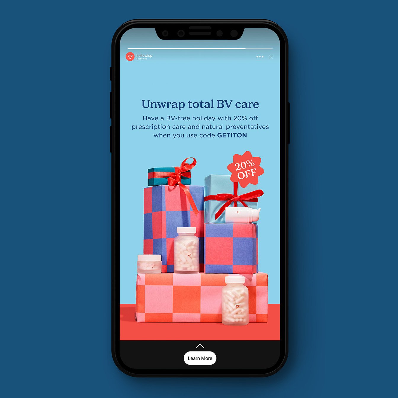 For Wisp’s End of Year Sale, I developed creative assets designed to amplify the visibility and impact of their biggest promotion of the year. From dynamic paid social ads tailored for high engagement to compelling email campaigns built around clear, conversion-driven messaging, each piece was crafted to spotlight the standout discounts across prescription care, sexual and reproductive health, and more. The result was a cohesive, high-energy campaign that pushed both brand awareness and sales momentum.